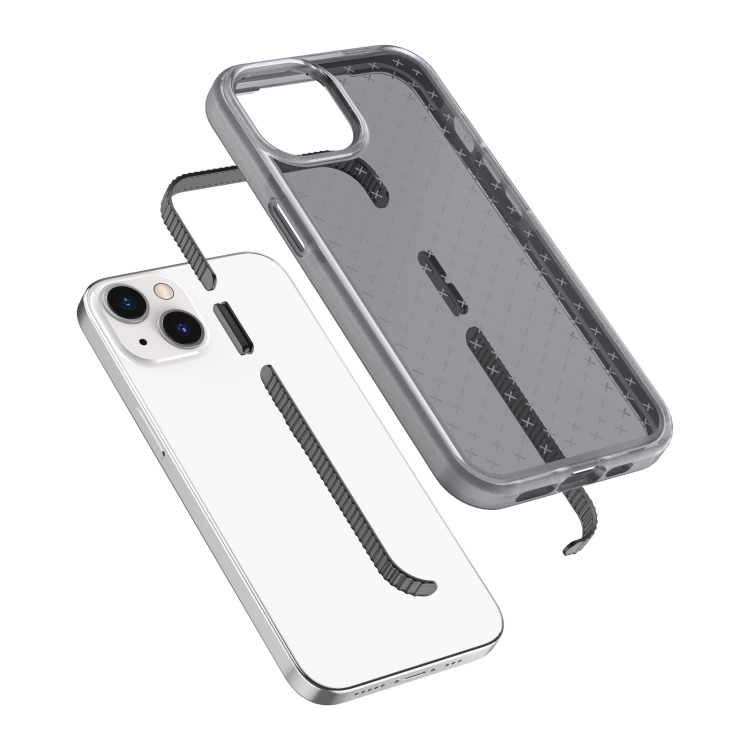 Funda Telefónica iPhone 13 Mini Patrón de Cuadrícula Transparente a Prueba de Golpes (Negro)