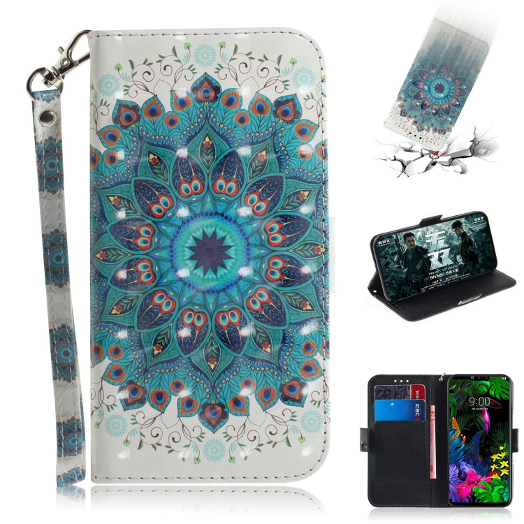 Funda de Cuero con Tapa Horizontal y Soporte para LG G8 Thinq (Paecock) con Patrón 3D y Ranuras para Tarjetas