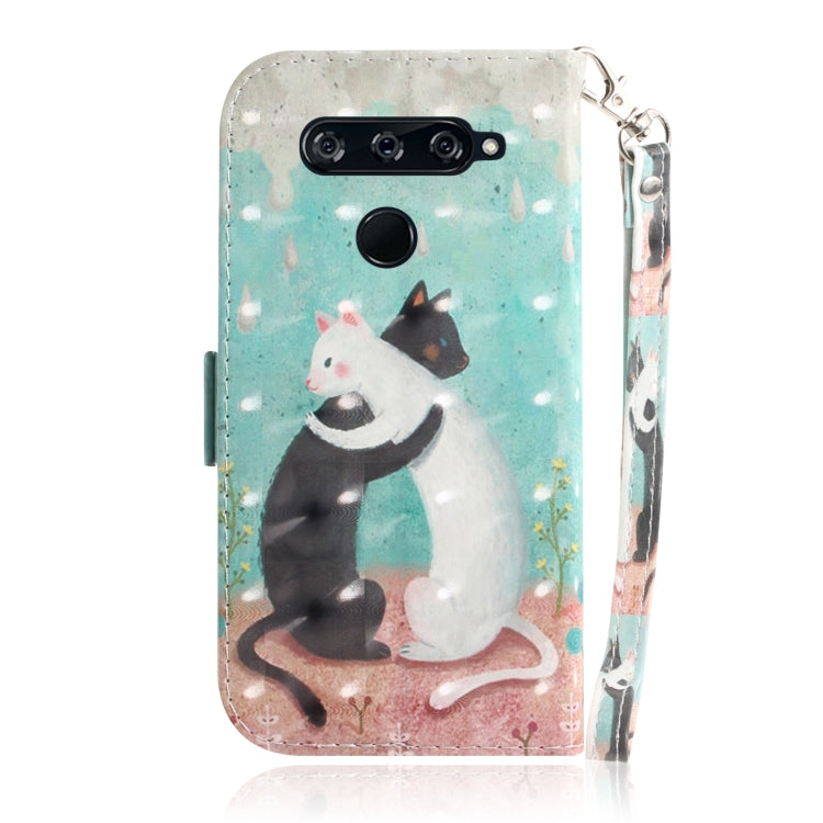 Funda de Cuero con Tapa Horizontal para LG V40 Thinq Patrón 3D Gato Blanco y Negro
