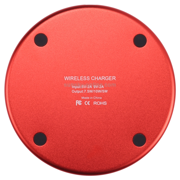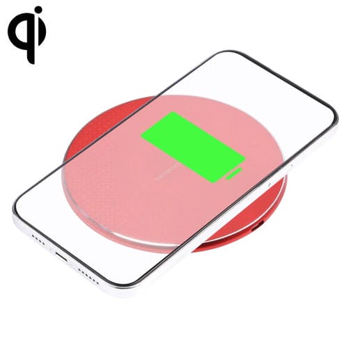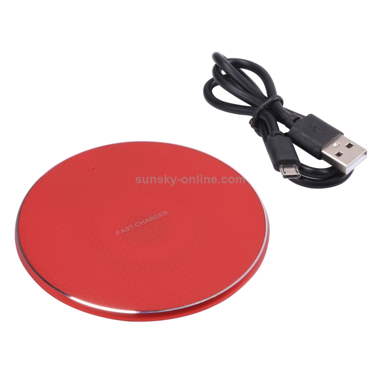 Cargador inalámbrico Qi 10W metal redondo patrón tela escocesa (Rojo)