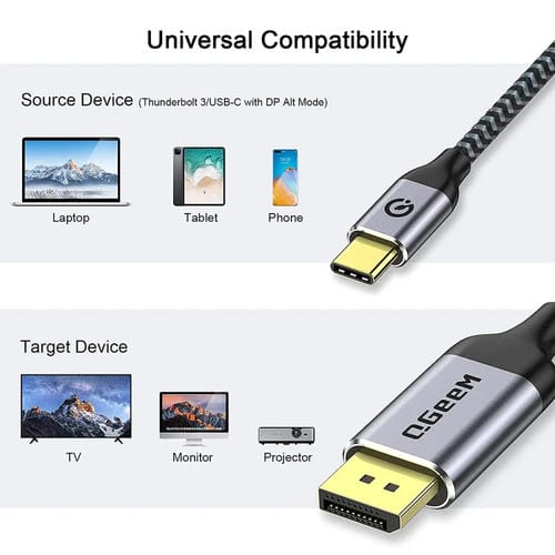 • 1x Cable Adaptador Qgeem QG-UA13 Tipo-C a DisplayPort 4K 60Hz Trenzado de Nylon 3M