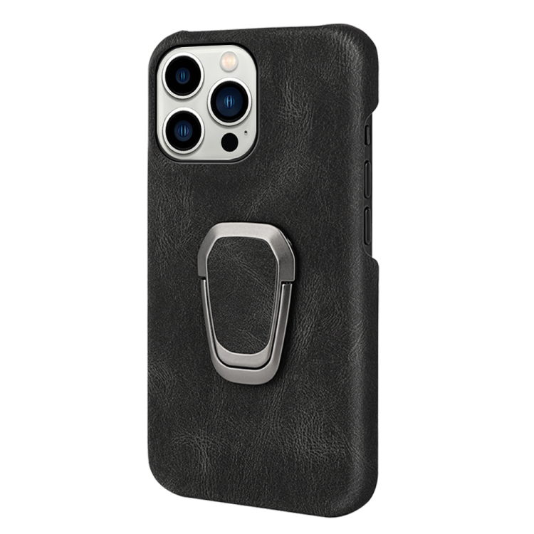 Funda Pu Phone Case con Ring Holder para iPhone 14 Pro (Negro)