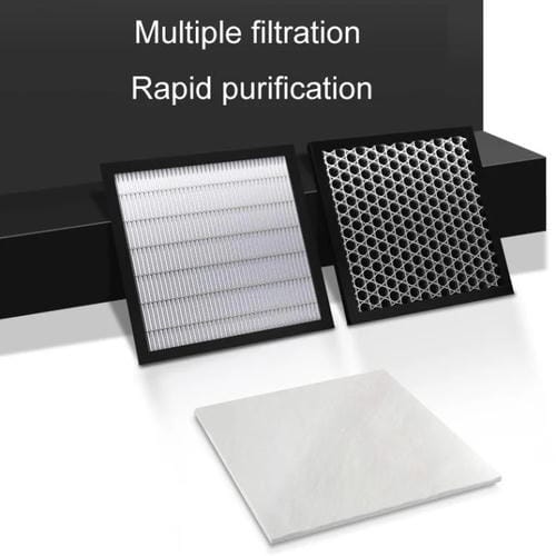 - Triple filtración con capas reemplazables; filtro primario (PM50), filtro HEPA (PM0.5) y filtro de carbón activado; recomendaciones de sustitución: filtro primario cada 1 mes, filtros HEPA y carbón activado cada 6 meses
