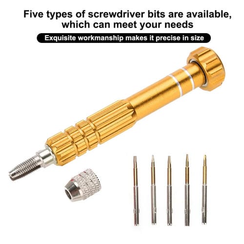 Schraubendrehersatz 5 in 1 Goldserie mit Spitzen T5, T6, 1,2, 1,5 und 0,8