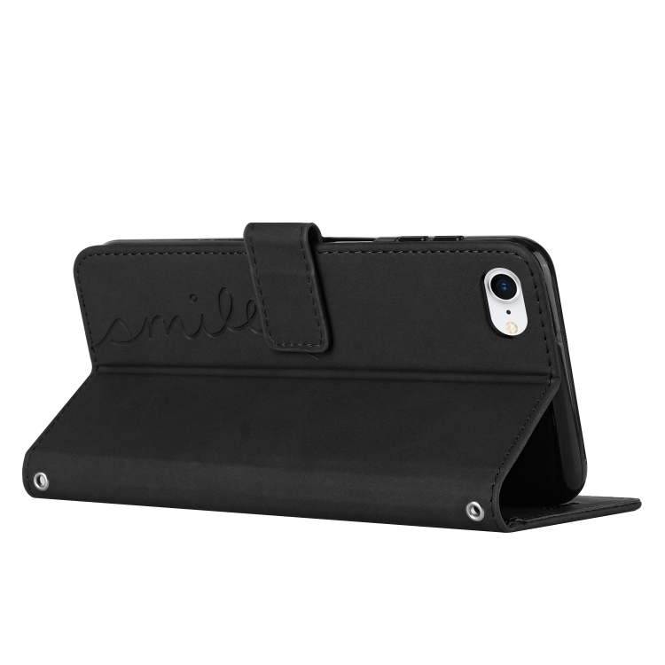 Funda de Cuero Skin Feel Heart Pattern para Teléfono con Cordón iPhone 6/7/8 (Negro)