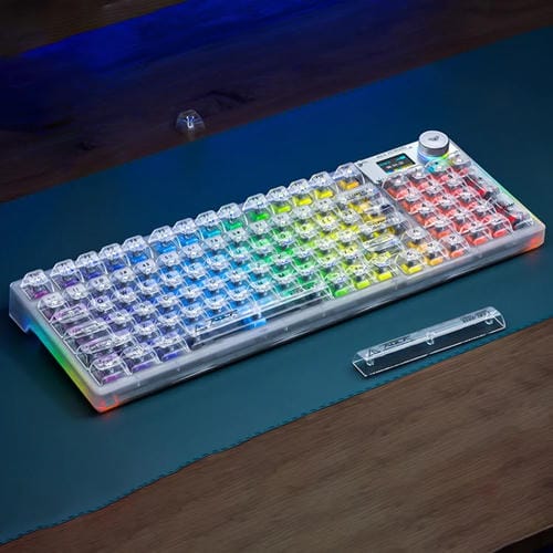- 1x Teclado Mecánico Aula F98 Pro 99 Teclas con Cable, 2,4G, Bluetooth, RGB, Eje Ice Soul (Blanco Transparente)