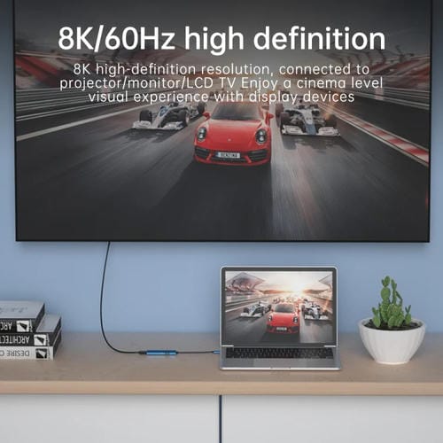 El Puerto DisplayPort 1.4 del Adaptador soporta una resolución máxima de hasta 8K a 60Hz, garantizando imágenes de alta definición. -