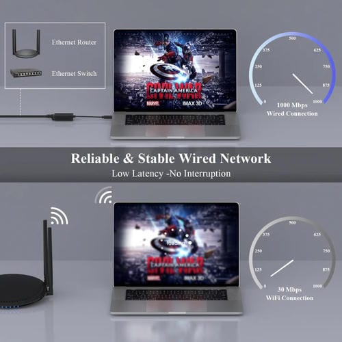 • Conexión de laptops, tablets o dispositivos con Puerto Tipo-C a redes Cableadas para mejorar la estabilidad y velocidad de internet