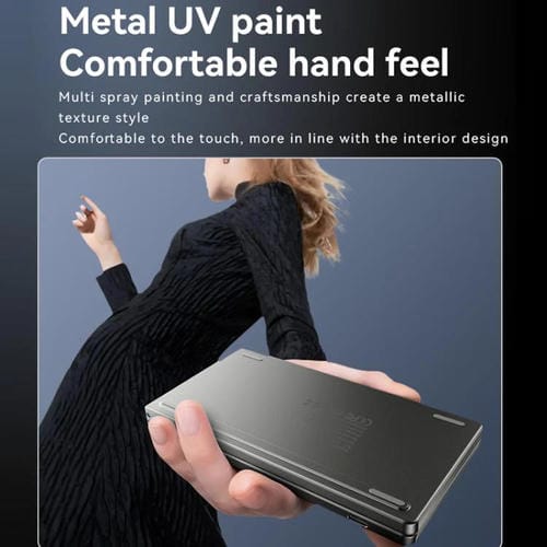 2. Elegante y con estilo: Fabricado con un acabado UV metálico de primera calidad, este teclado no solo luce elegante, sino que también ofrece una cómoda experiencia de escritura.