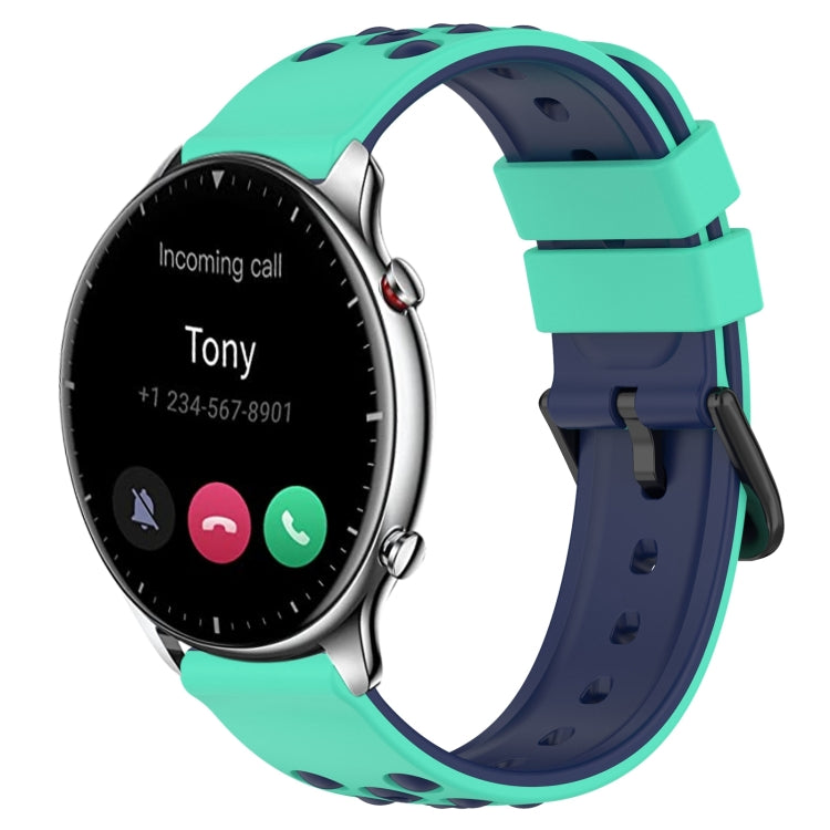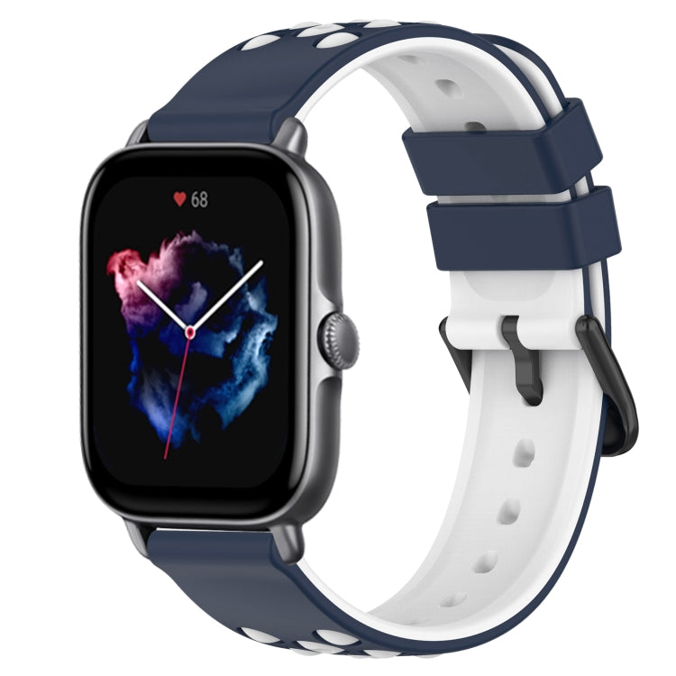 Correa de Reloj Amazfit GTR 42mm 20mm Silicona Porosa Dos Colores (Azul Medianoche + Blanco)