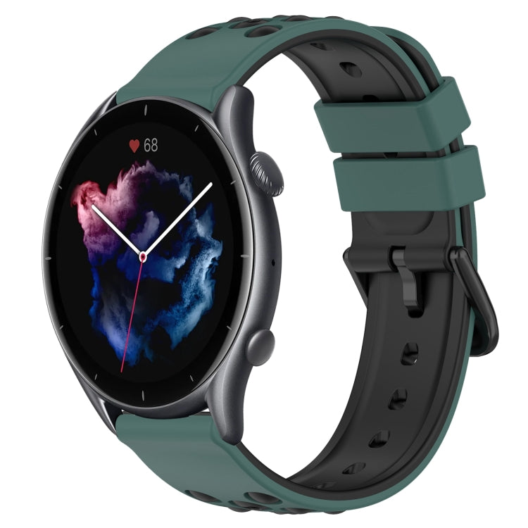 Correa de Reloj para Amazfit GTR 3 22mm Silicona Porosa Dos Colores (Verde Oliva + Negro)