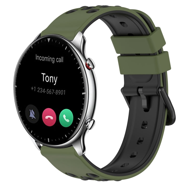 Correa de Reloj para Amazfit GTS 20mm Silicona Porosa Dos Colores (Verde Oliva + Negro)