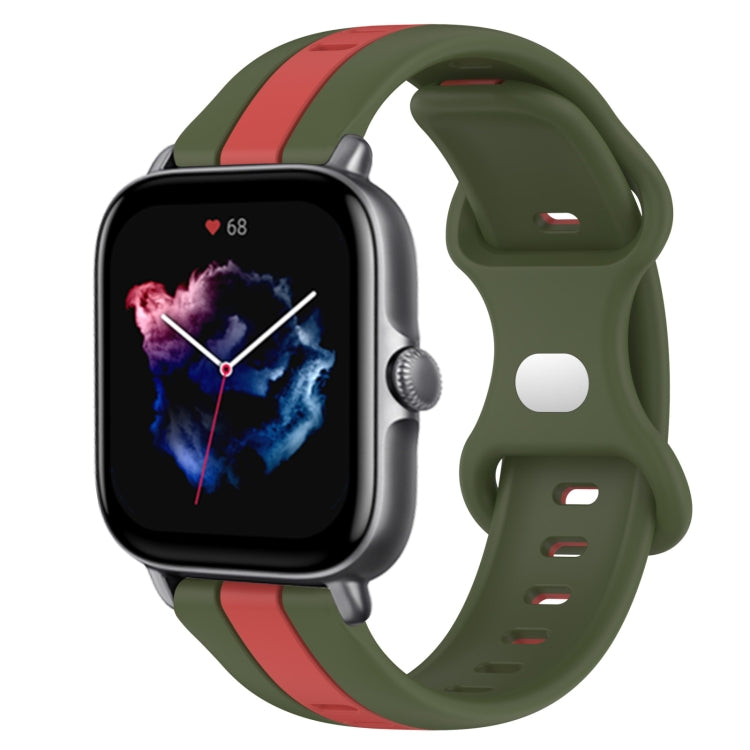 Correa de Silicona para Amazfit GTS 3 20mm con Hebilla de Mariposa (Rojo + Verde Militar)