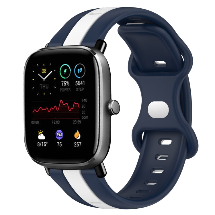 Correa de Reloj Amazfit GTS 2 Mini 20mm Silicona Dos Colores Hebilla de Mariposa (Blanco + Azul)