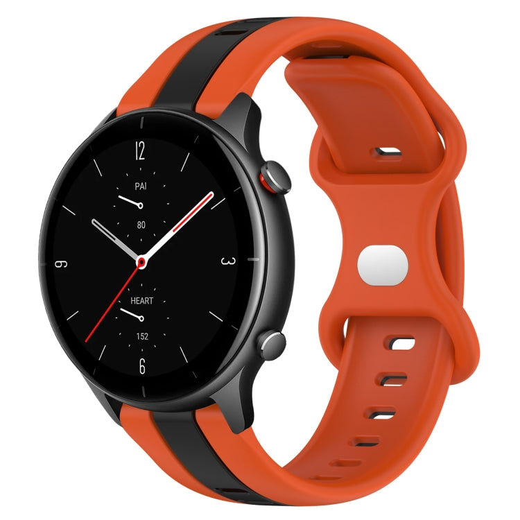 Correa de Silicona para Amazfit GTR 2E 22mm con Hebilla de Mariposa Dos Colores (Naranja + Negro)