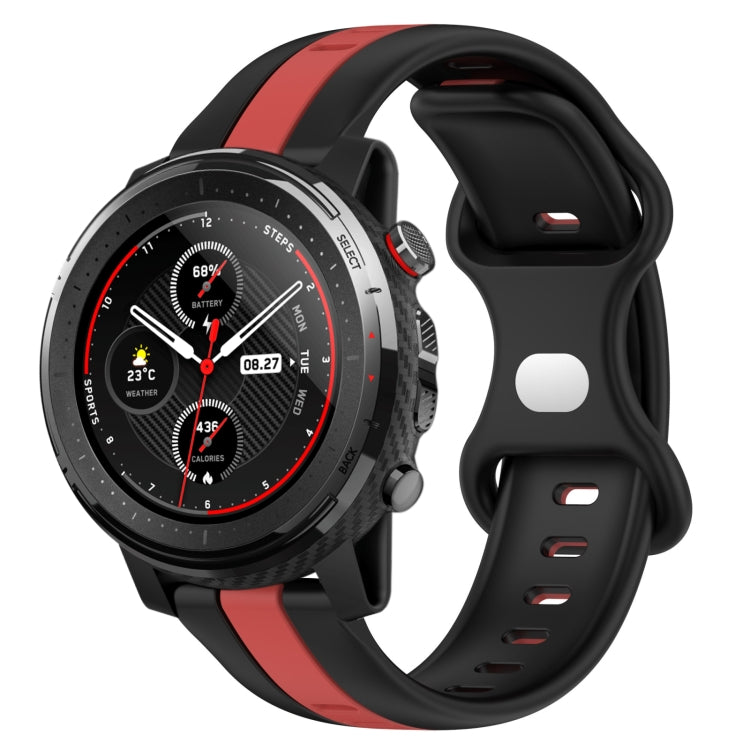 Correa de Reloj Amazfit 3 22mm Silicona Dos Colores Hebilla de Mariposa (Negro + Rojo)
