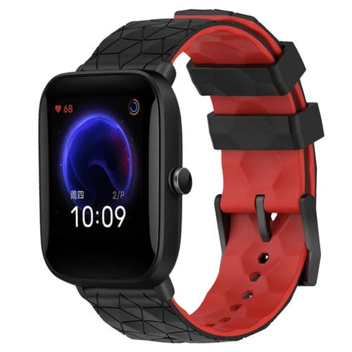 Banda de Reloj para Amazfit Pop 20mm Textura de Fútbol Silicona Dos Colores (Negro + Rojo)