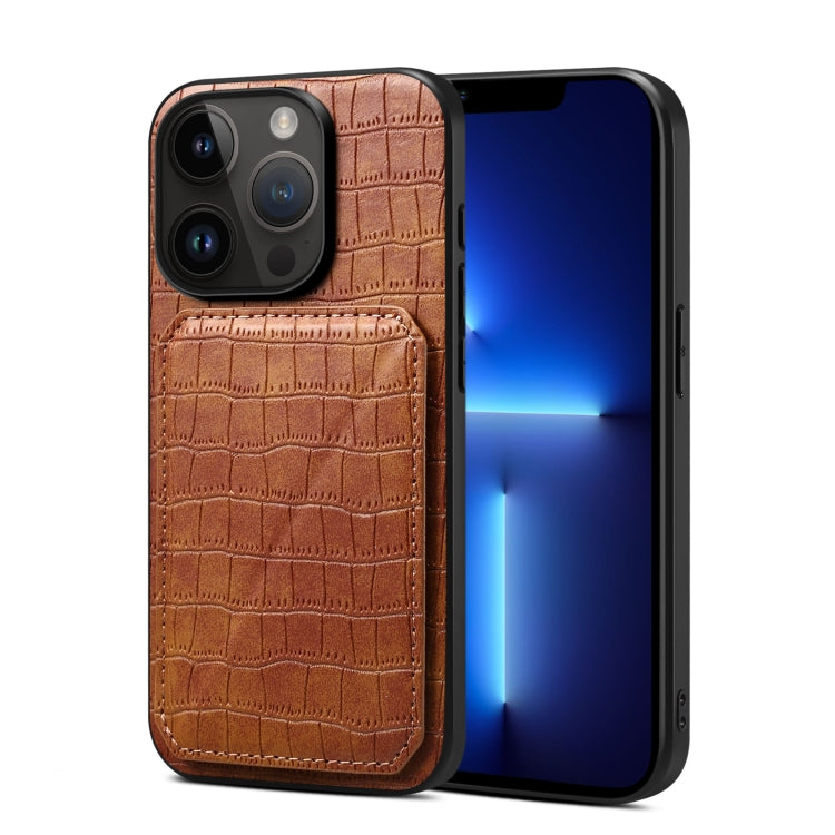 Funda Trasera iPhone 13 Pro Piel de Cocodrilo de Imitación con Soporte (Marrón)
