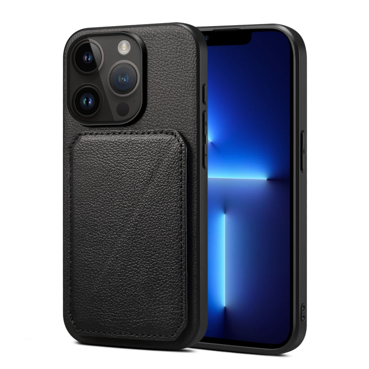 Funda Trasera para iPhone 13 Pro de Piel de Becerro de Imitación con Soporte (Negro)