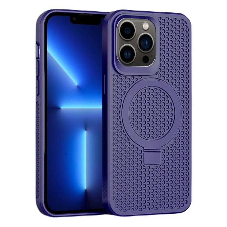 Funda para iPhone 13 Pro Skin Feel PC + TPU Magnética con Enfriamiento y Soporte (Púrpura)