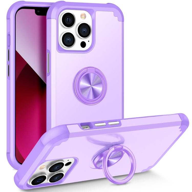 Funda para Teléfono iPhone 13 Pro L2 Magnética con Soporte de Anillo Giratorio (Púrpura Claro)