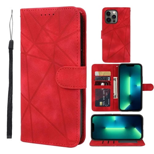 Funda de Cuero para Teléfono iPhone 13 Pro Skin Feel Líneas Geométricas (Negro)