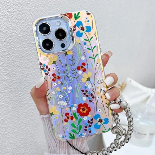 Funda para Teléfono iPhone 13 Pro Flor Láser Galvanizada con Correa para la Muñeca