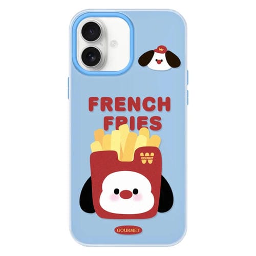 Funda híbrida TPU y Policarbonato iPhone 16 Patatas Fritas Cachorro (Azul)