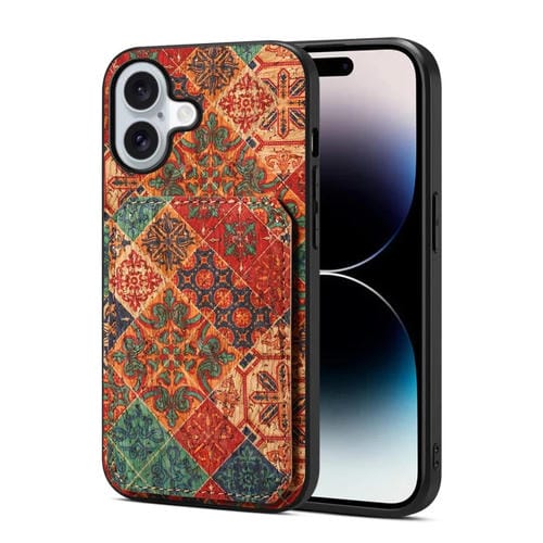 Funda para Teléfono iPhone 16 Cobertura Total Bolsa de Tarjeta Textura de Becerro (Naranja)