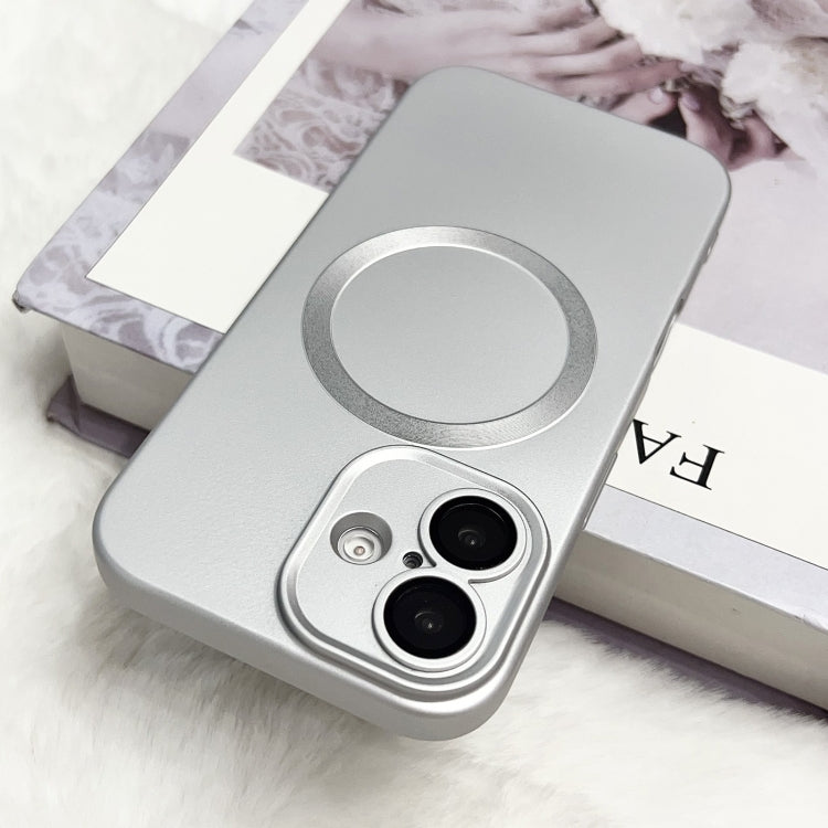 Funda para teléfono TPU Magsafe iPhone 16 Textura Cd Pintura Metalizada (Plateada)