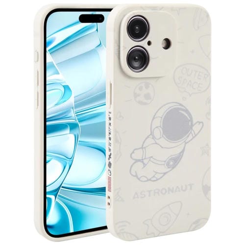 Funda de silicona iPhone 16 Planet Landing diseño Astronauta borde recto (Blanco)