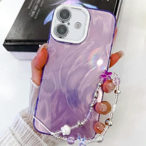 Funda para Teléfono iPhone 16 con Pulsera Cadena Textura Brillante Revestimiento TPU (Morado)
