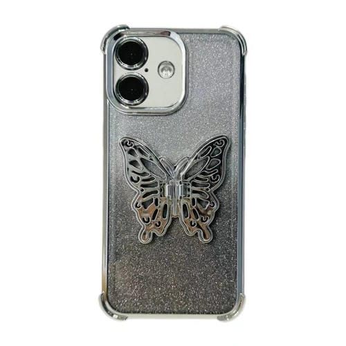 Funda TPU con Soporte Mariposas 3D Electropolada para iPhone 16 (Plateada)