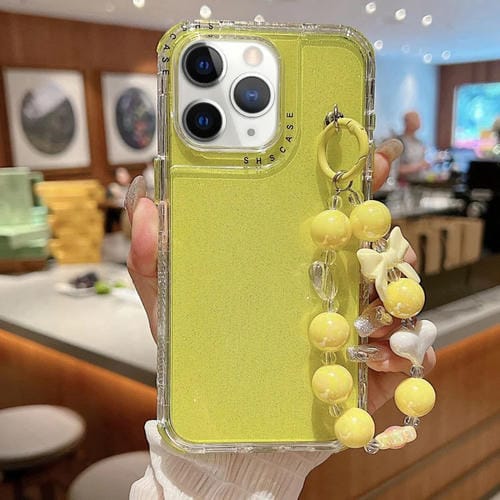Funda para iPhone 11 Pro Max TPU PC Lentejuelas Brillantes Cobertura Total Pulsera (Amarilla)
