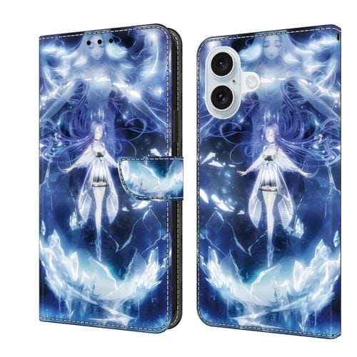 Funda de Cuero Pintada con Cristales para iPhone 16 Plus (Hada Mágica)