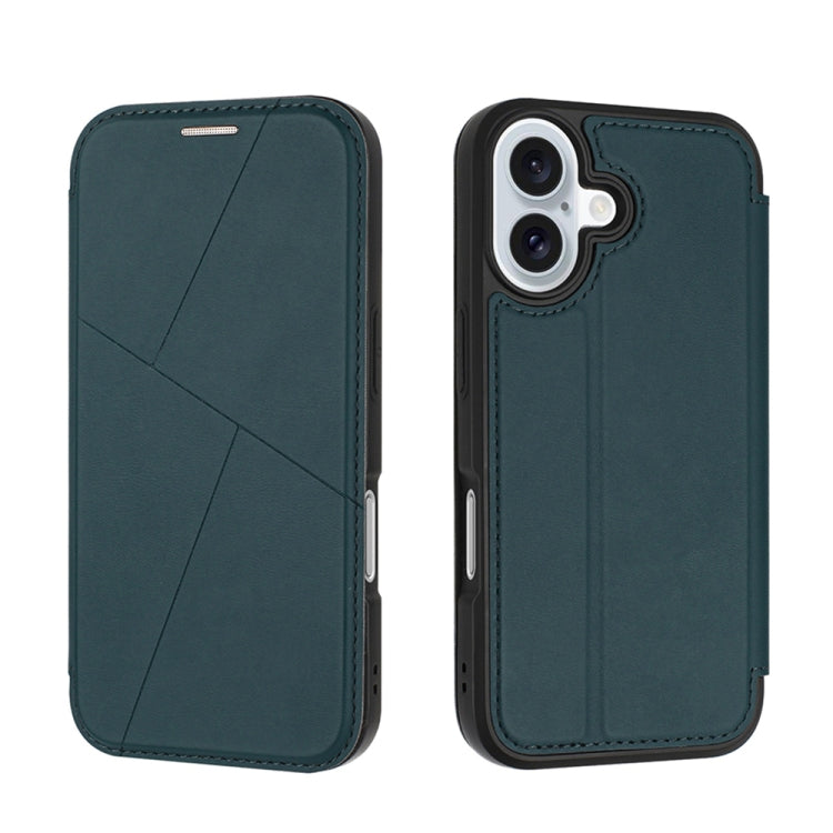 Funda de Piel Azns con Tapa Magnética Textura Piel de Becerro para iPhone 16 Plus (Azul Oscuro)