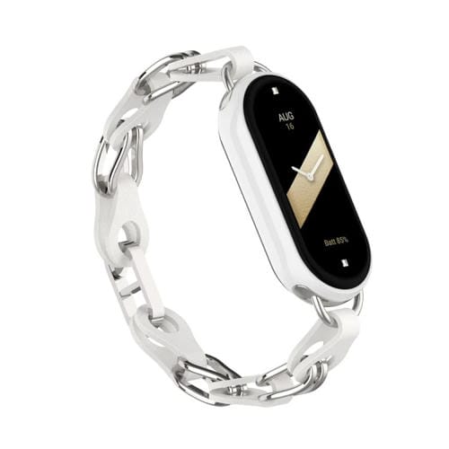 Correa de Reloj Cadena Cuero Metal Hueco para Xiaomi Smart Band 9 (Blanco)