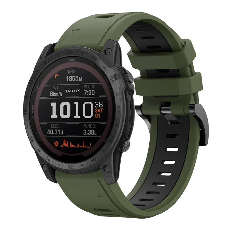 Correa de Reloj de Silicona Deportiva para Garmin Tactix 7 / 7Pro 26mm (Verde Militar + Negro)