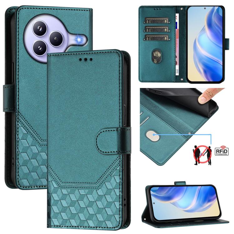 Funda de cuero con relieve de panal RFID para Xiaomi Civi 5 Pro 5G (verde pavo real)
