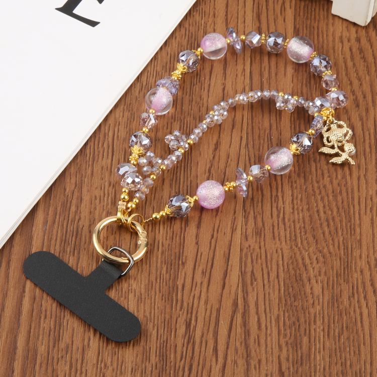 Cadena de cuentas de flores para teléfono universal con cuentas de cristal antipérdida (morado)