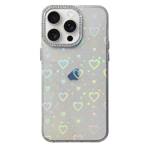 Caja de teléfono Acrílico para iPhone 13 Pro Max Love Pattern Diamond Lens Frame Imd (Blanco)