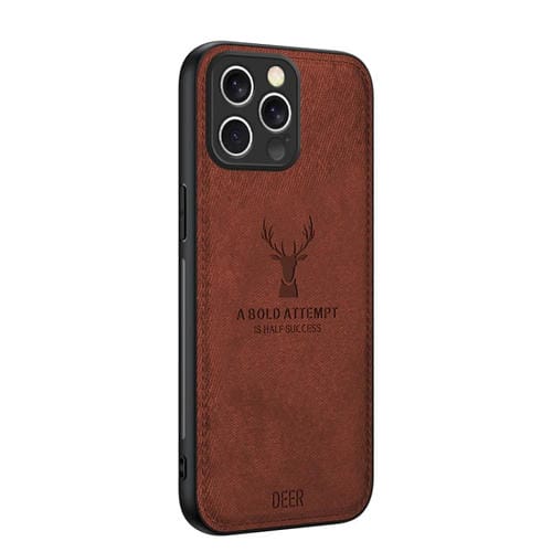 Funda de Tela para iPhone 16 Pro con Diseño de Cabeza de Ciervo Todo Incluido (Marrón)