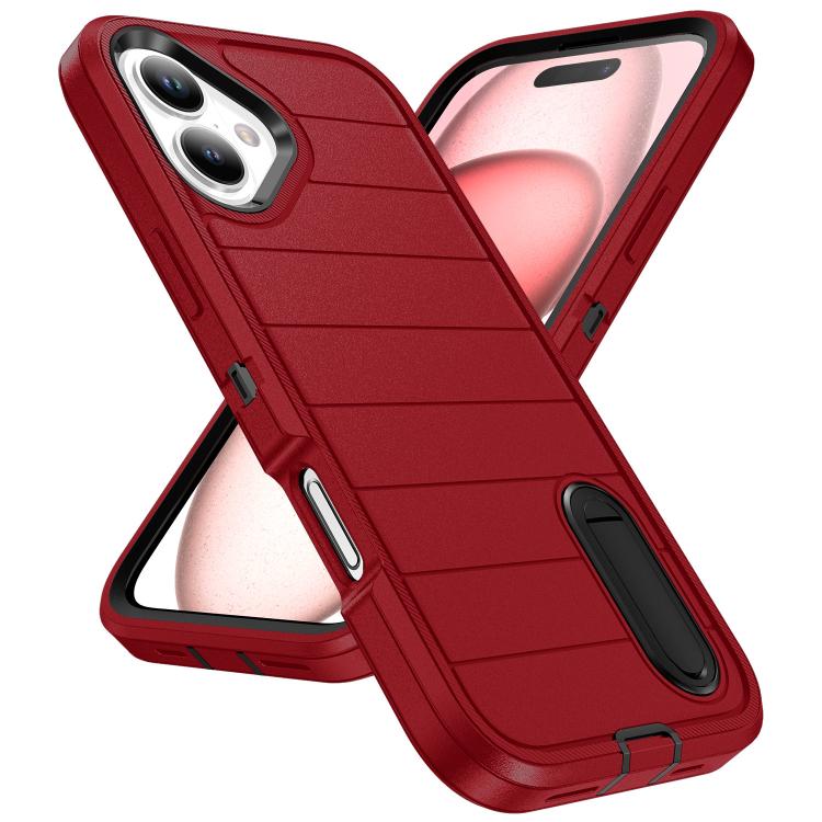 Funda para iPhone 16 Defender Gen2 Silicona y PC Resistente con Soporte (Rojo y Negro)