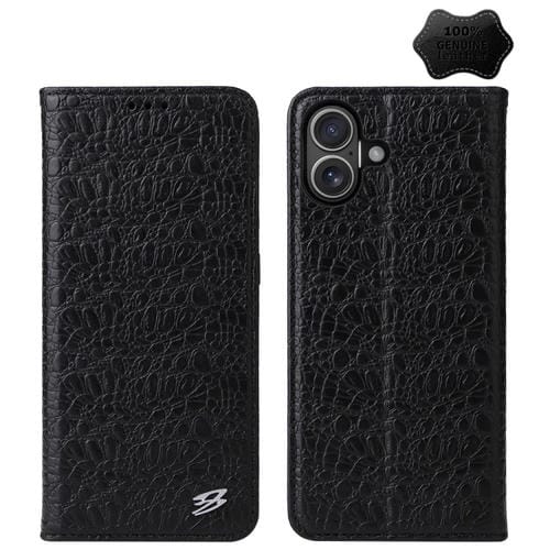 Funda para iPhone 16 Fierre Shann Piel Auténtica Textura de Cocodrilo (Negra)