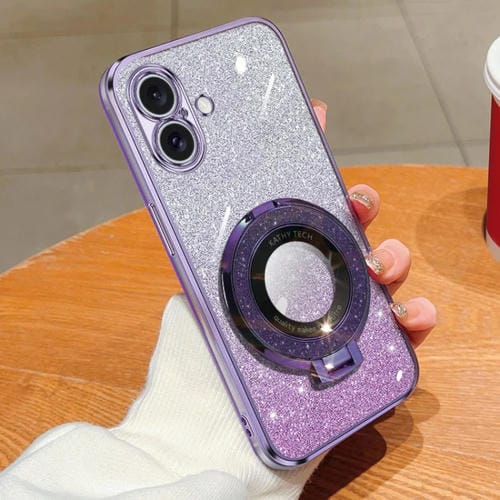 Funda para Teléfono TPU con Soporte Redondo Purpurina Degradada iPhone 16 (Morado)