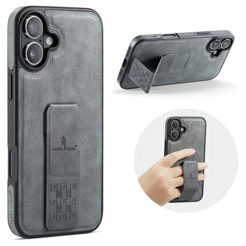 Funda para iPhone 16 Fierre Shann Soporte Trasero Cuero de Vaca con Cera de Aceite (Gris)