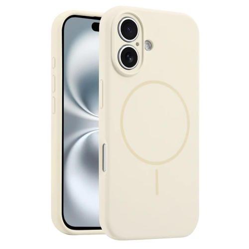 Funda Silicona Líquida iPhone 16 Magsafe con Orificios Finos (Amarillo Crema)
