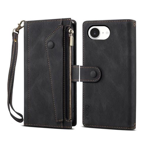 Estuche de Cuero Rfid Eseble Serie Star para iPhone 16E con Cremallera y Cordón (Negro)
