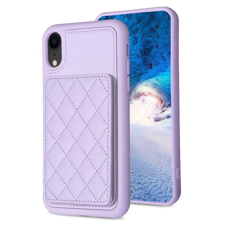 Funda para iPhone Xr Bf25 Square Plaid Card Bag Holder con soporte para tarjetas (Púrpura)