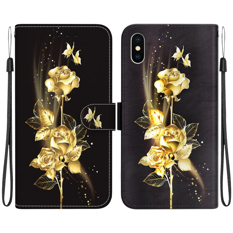 Funda para iPhone Xs / X Cuero Dibujo Coloreado Textura Cristal (Mariposa Dorada Rosa)